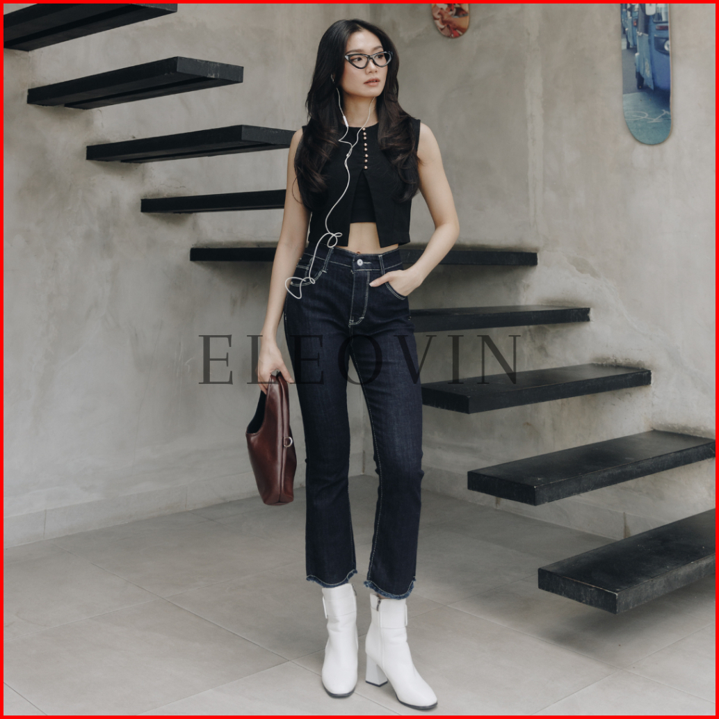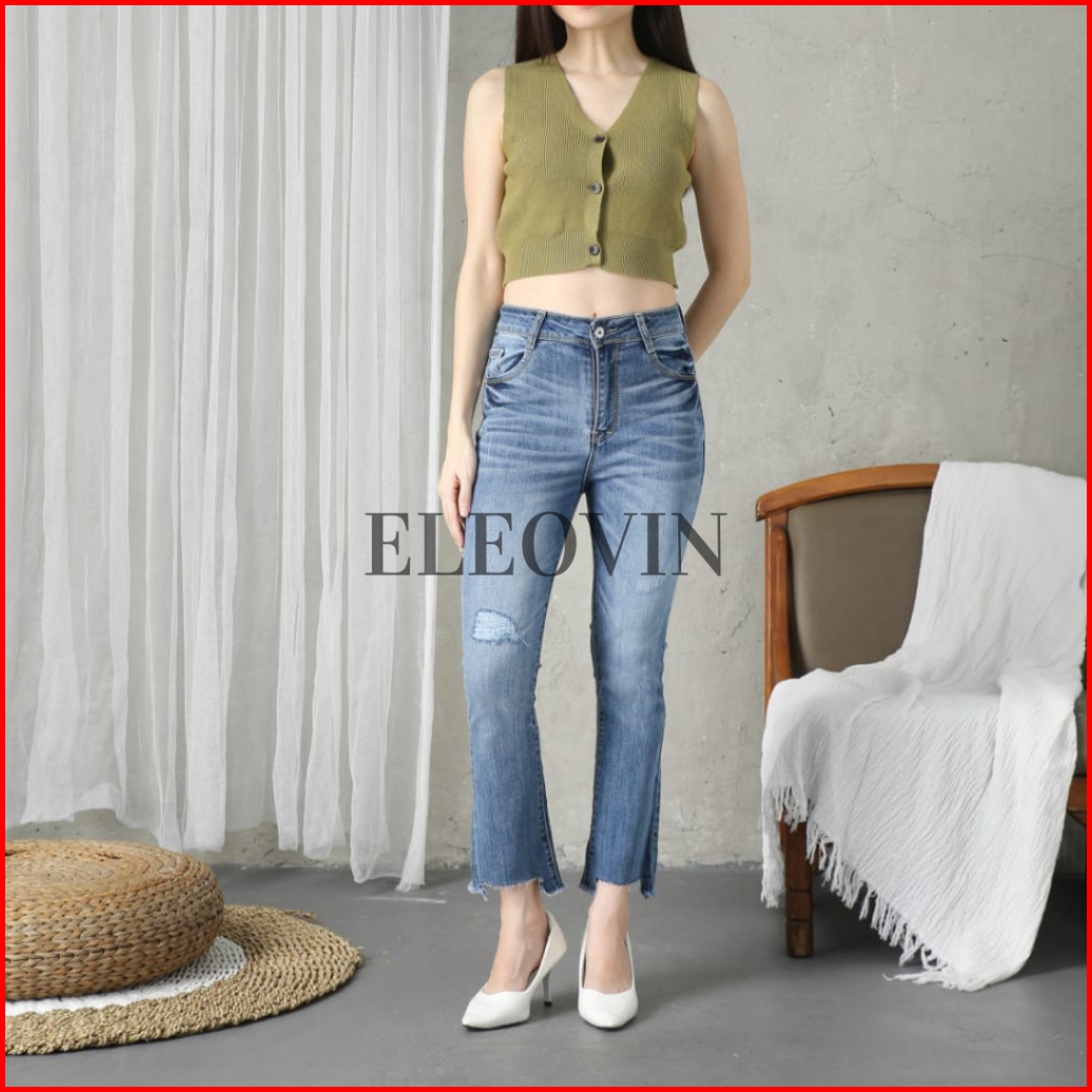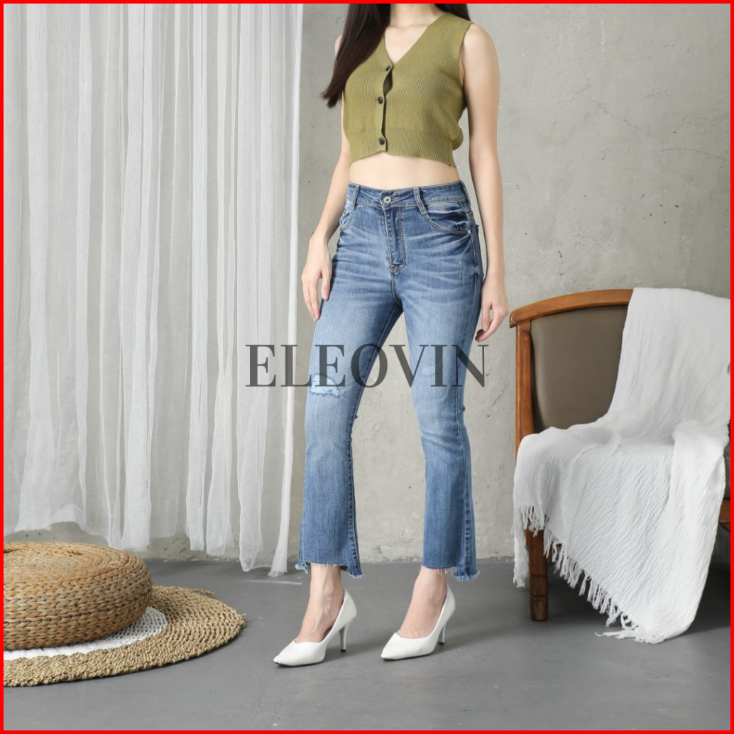 Eleovin Fashion - Cutbray Lazenia 7 9 - Celana Panjang Wanita Highwaist Cutbray Fashionable Jeans Stretch