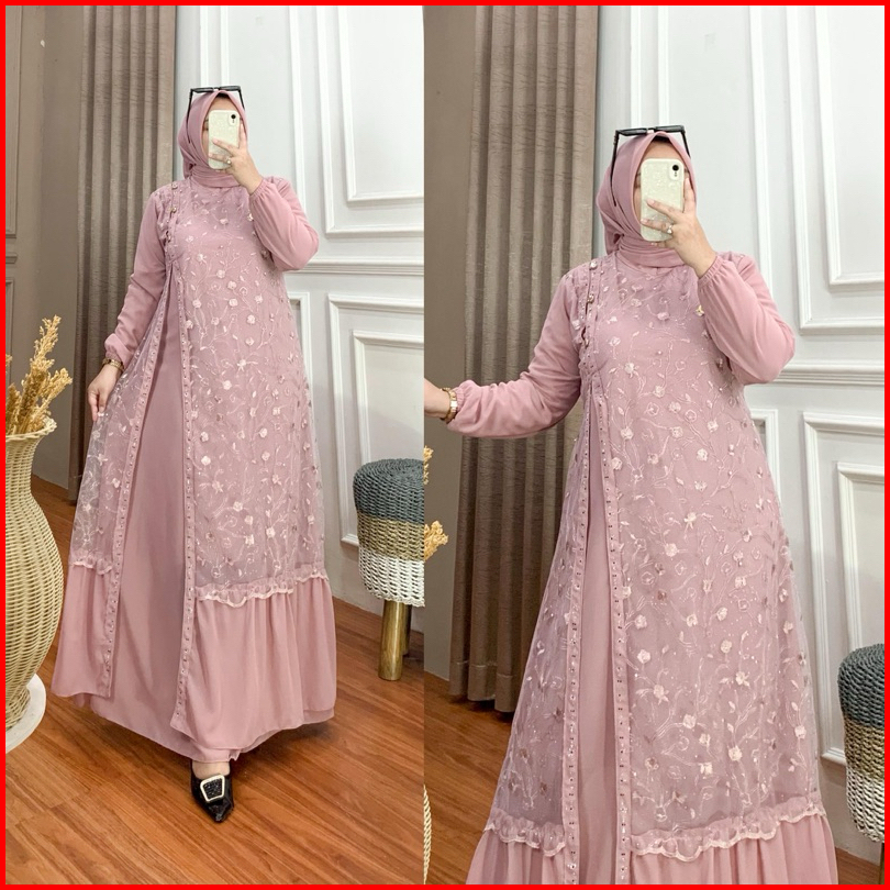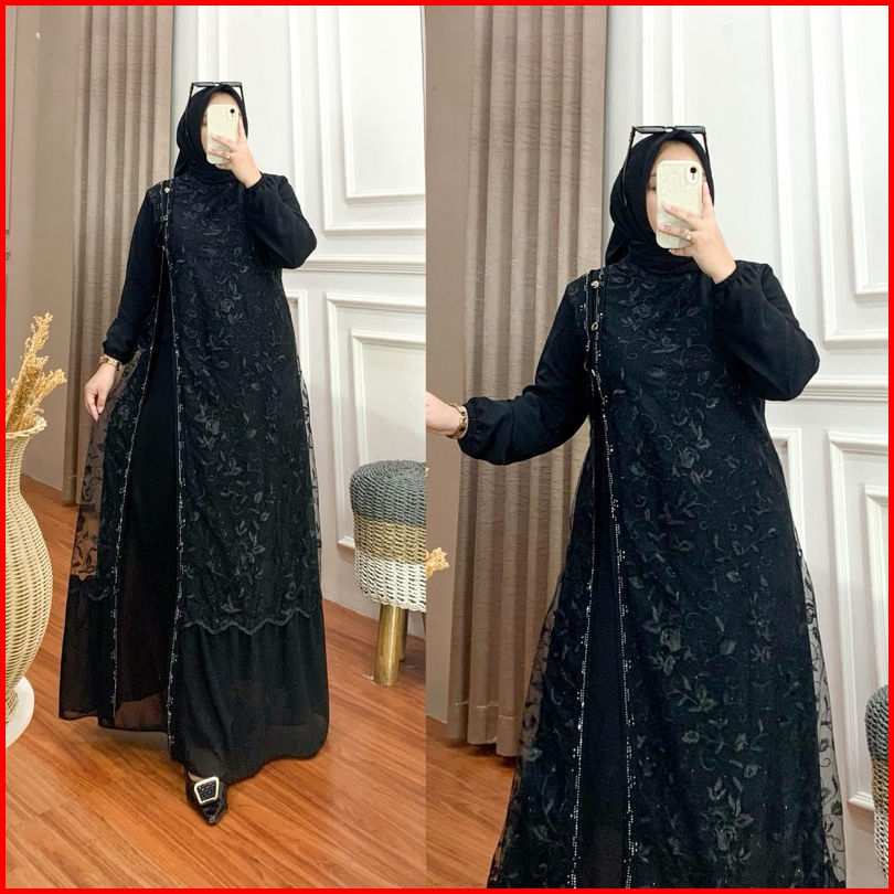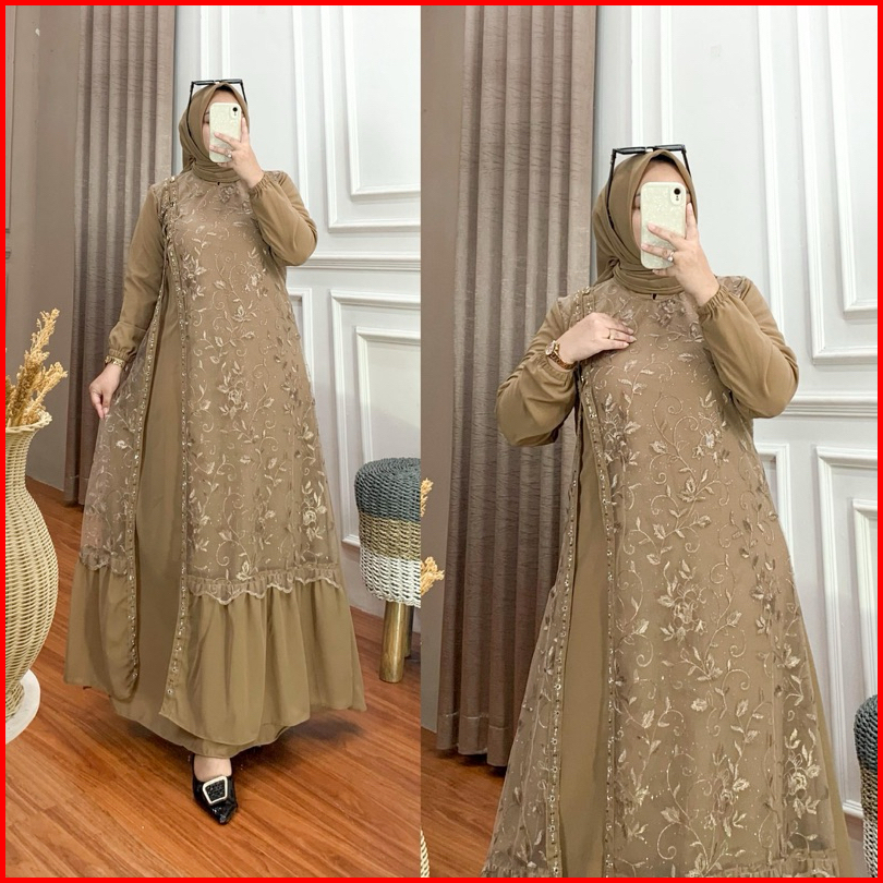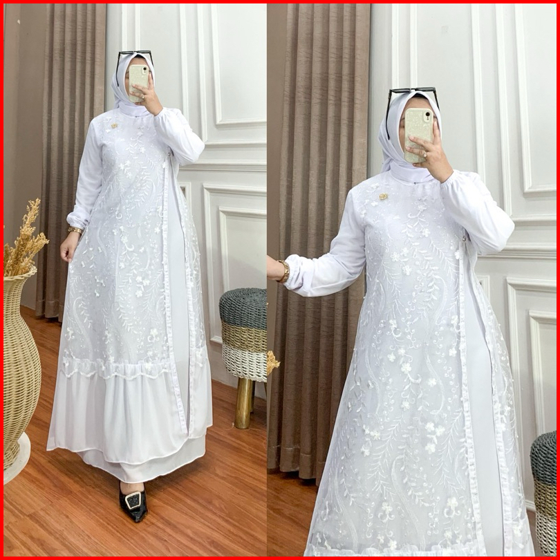 Kamila Gamis Putih Swarosky Brukat Set Hijab Ceruty Kondangan Rempel Pesta