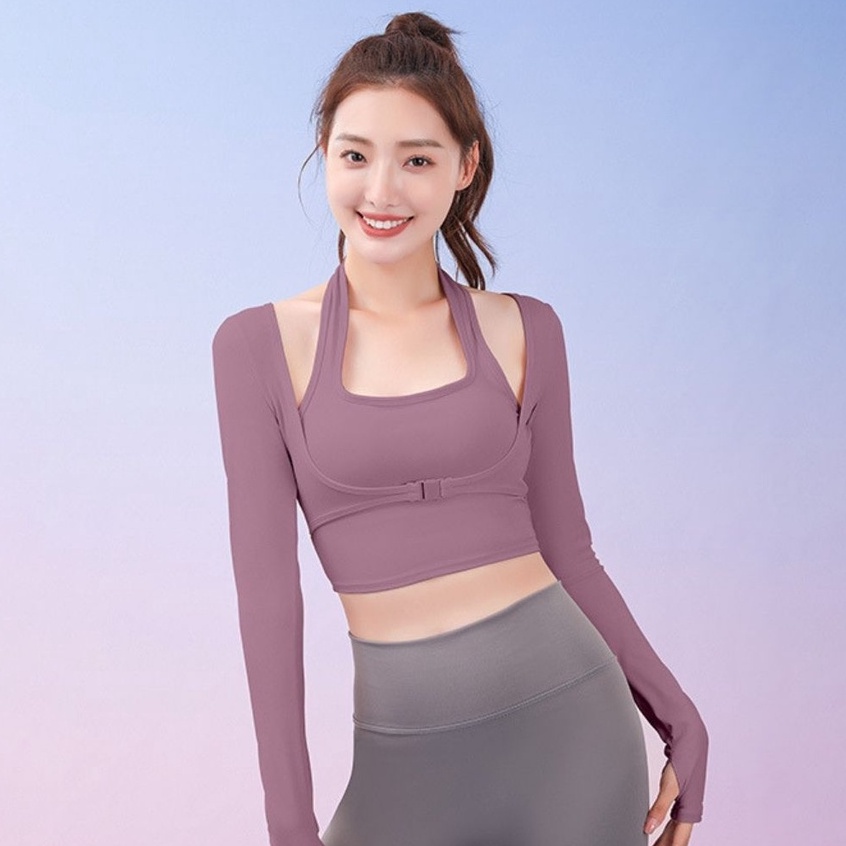 Crop Top Wanita Olahraga Yoga Gym Fitness Aerobik Zumba Lengan 1142