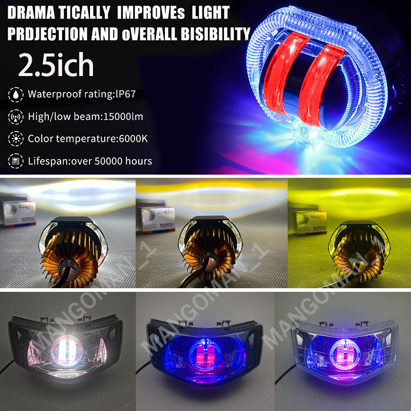 Lampu Biled Tembak LED Projie 2.5 inch Mini Projie Biled 2 Lensa Ala Ala Biled Dengan Devil Eye Original Super Terang High Low 30Watt IP67 Waterproof
