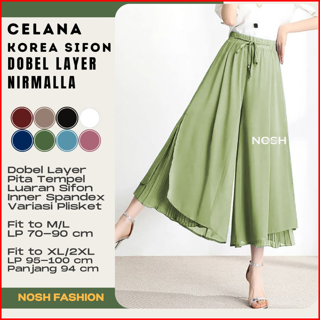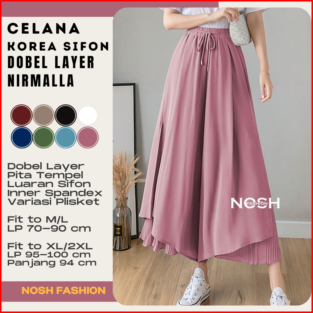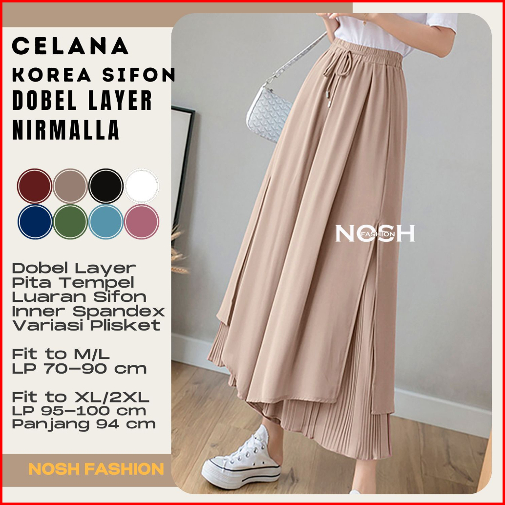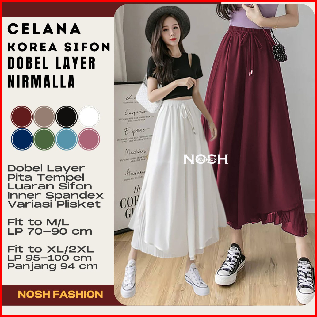 Celana Panjang Sifon Gaya Korea Nirmala Stice Pants Celana Kulot Dobel Layer Nosh