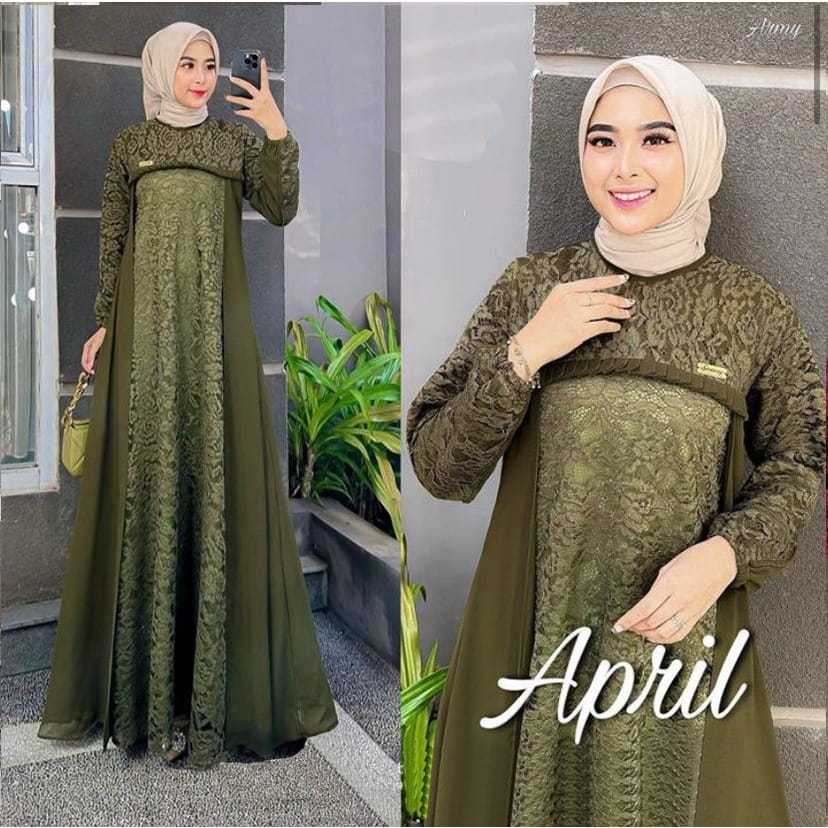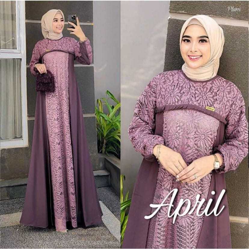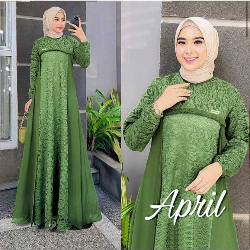 Gamis Terbaru Dress Terbaru April Dress Bahan Cerutty Mix Brukat Gamis Kondangan