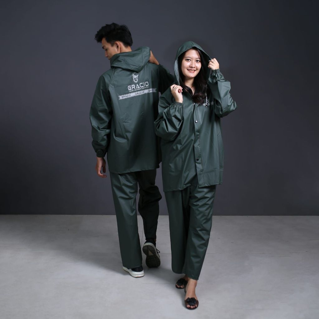 RAINCOAT, JAS HUJAN Dewasa Terbaik Pria Wanita By GRACIO Mantel HIJAU ARMY