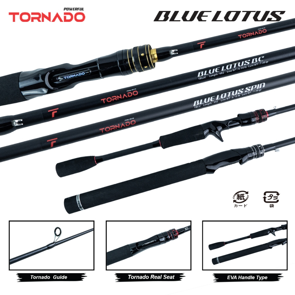 TORNADO Joran Pancing BLUE LOTUS Spinning & Baitcasting 150CM 198CM High Modulus Carbon Hollow Joran Pancing Kolam Kuat dan Ringan