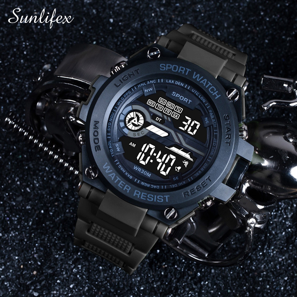 Sunlifex Jam Tangan Pria Digital Multifungsi Olahraga Tali Silikon Jam Tangan Cowok Original SLM0006