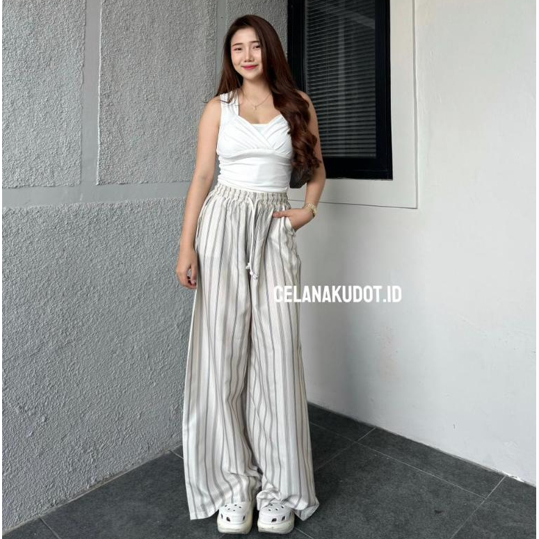 Celanakudot - Everyday Pants - Strip Pants - Celana Panjang Wanita Baggy Kantor Kuliah - Kulot Pinstripe - Celana Formal Casual Wanita Loose Basic