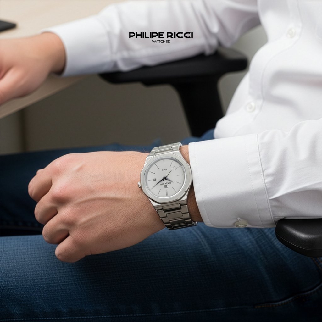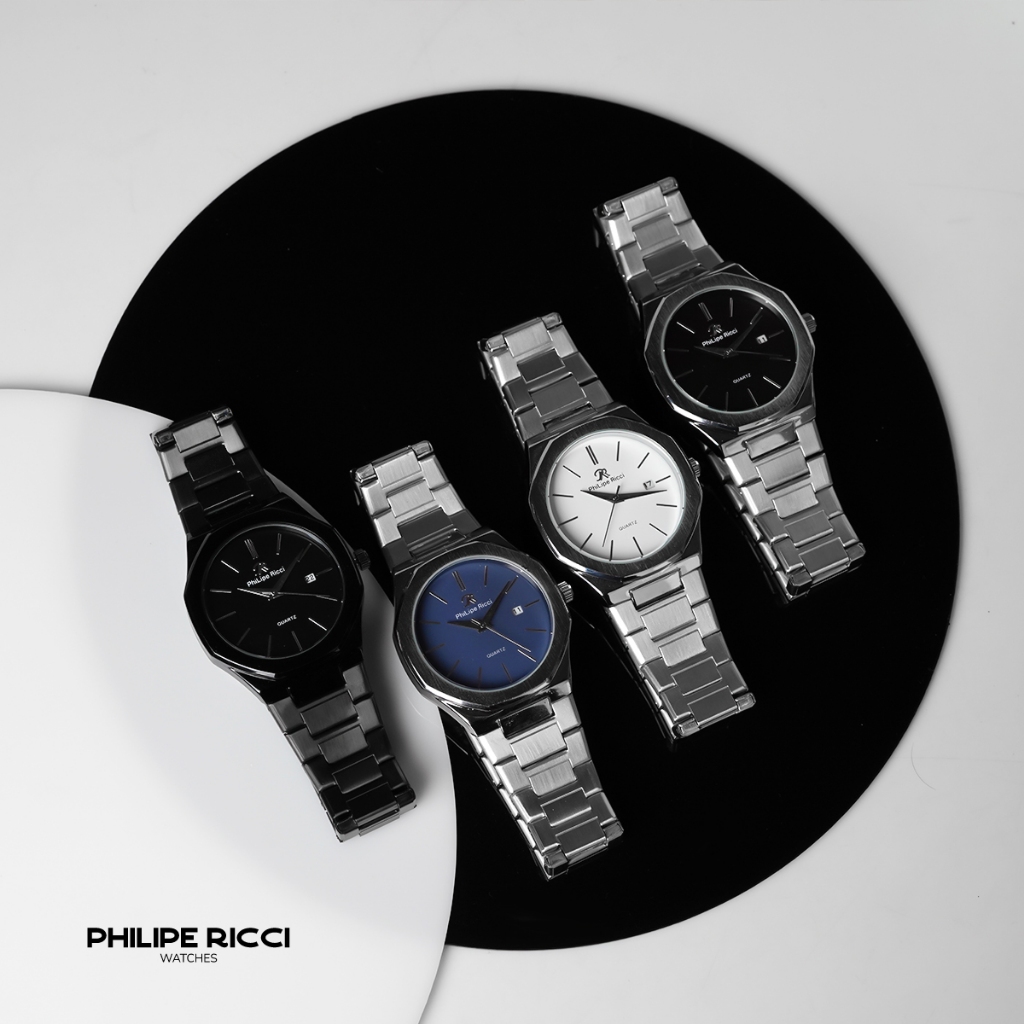 PhiLipe Ricci Jam Tangan Pria Rantai Analog Simple Keren Tipis 100 PERSEN Original Terbaru 6381 Free Box
