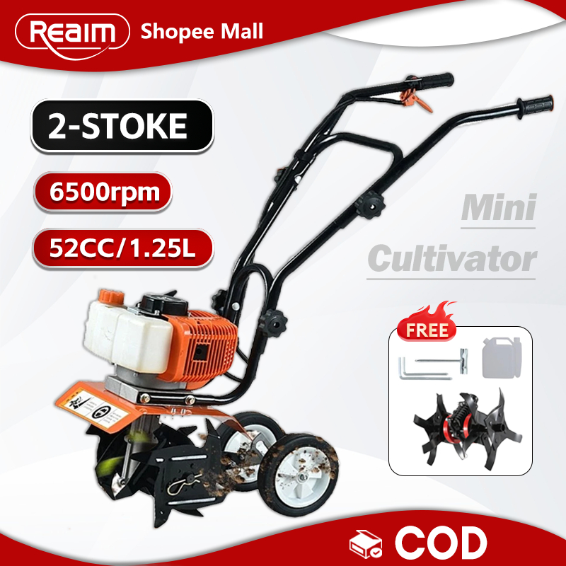 Reaim Mini Cultivator Mini Tiller Bensin 52CC 2-Stroke Tiller Scarifier micro Petrol Engine Rotary Mini Tiller Tanah Kec