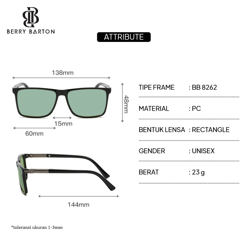 Berrybarton - Kacamata Square Polarized PePORTABLE REFFIL Sunglasses Anti UV 400 8262