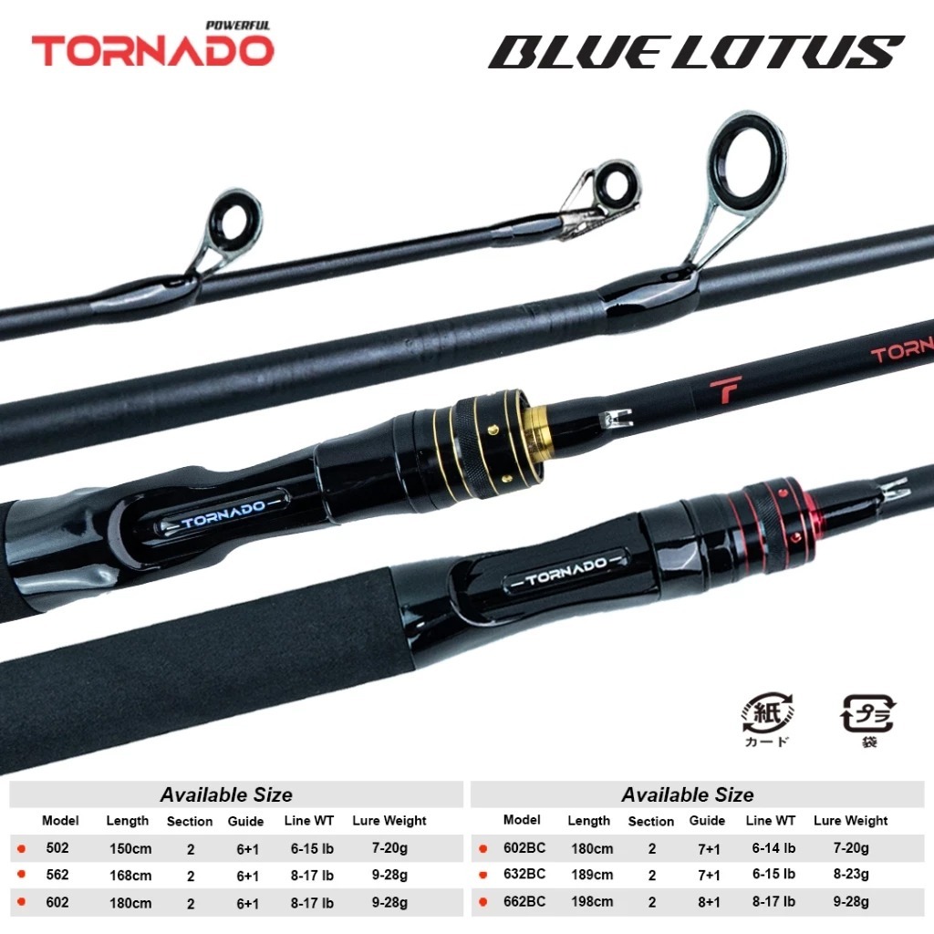TORNADO Joran Pancing BLUE LOTUS Spinning & Baitcasting 150CM 198CM High Modulus Carbon Hollow Joran Pancing Kolam Kuat dan Ringan