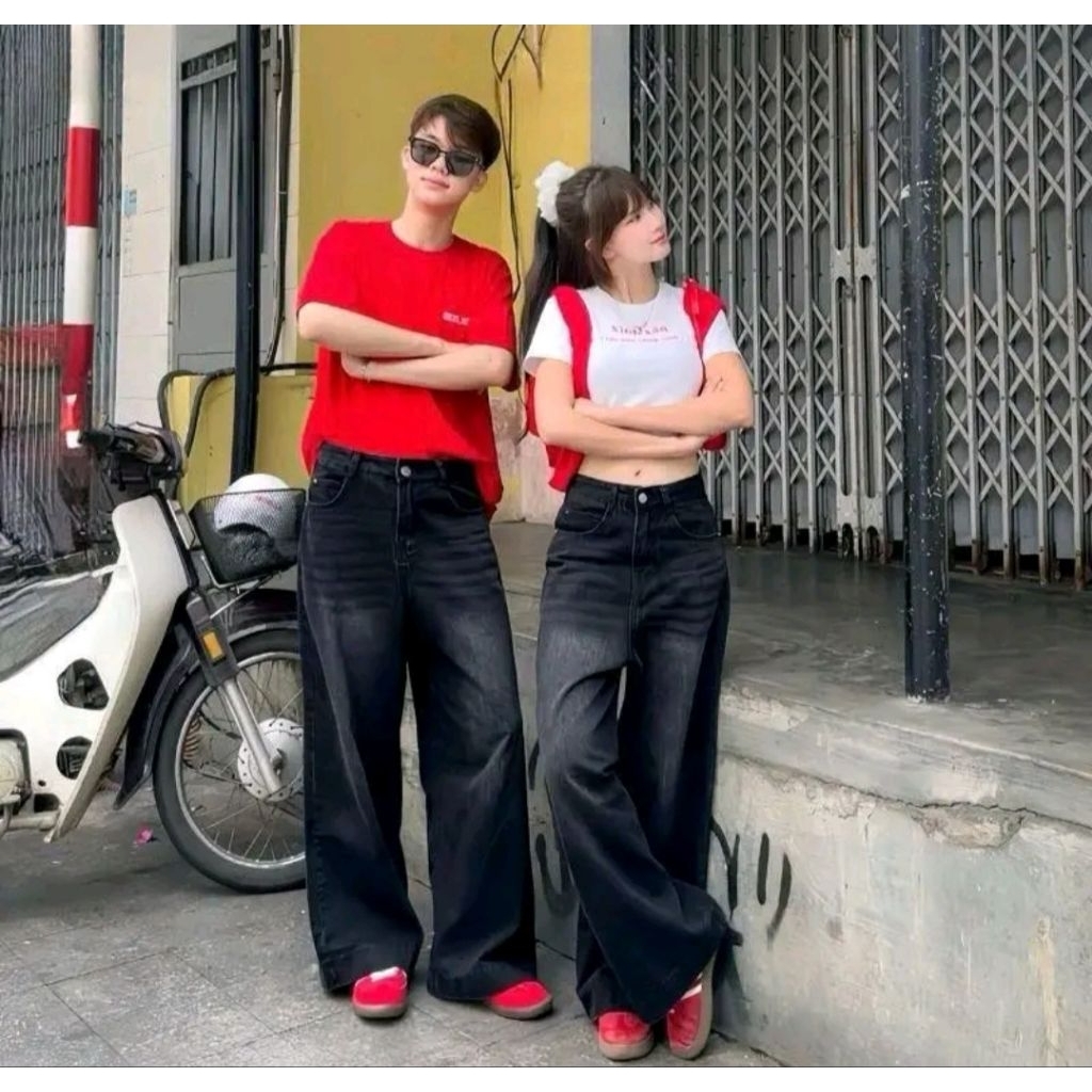 Baggy Jeans - Celana Jeans Wanita Baggy pants Hitam Retro Terbaru - Celana Baggy Jeans Retro Gombrong Reguler Loose Wanita Kekinian Panjang