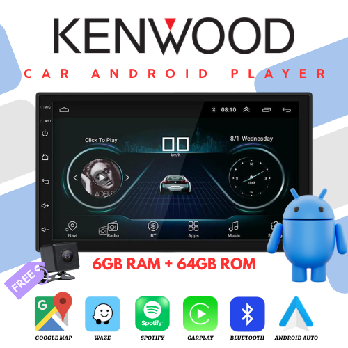 KENWOOD Head Unit Android [ 6GB + 64GB ] Pemutar Mobil Android Full HD Multimedia MP5 Player