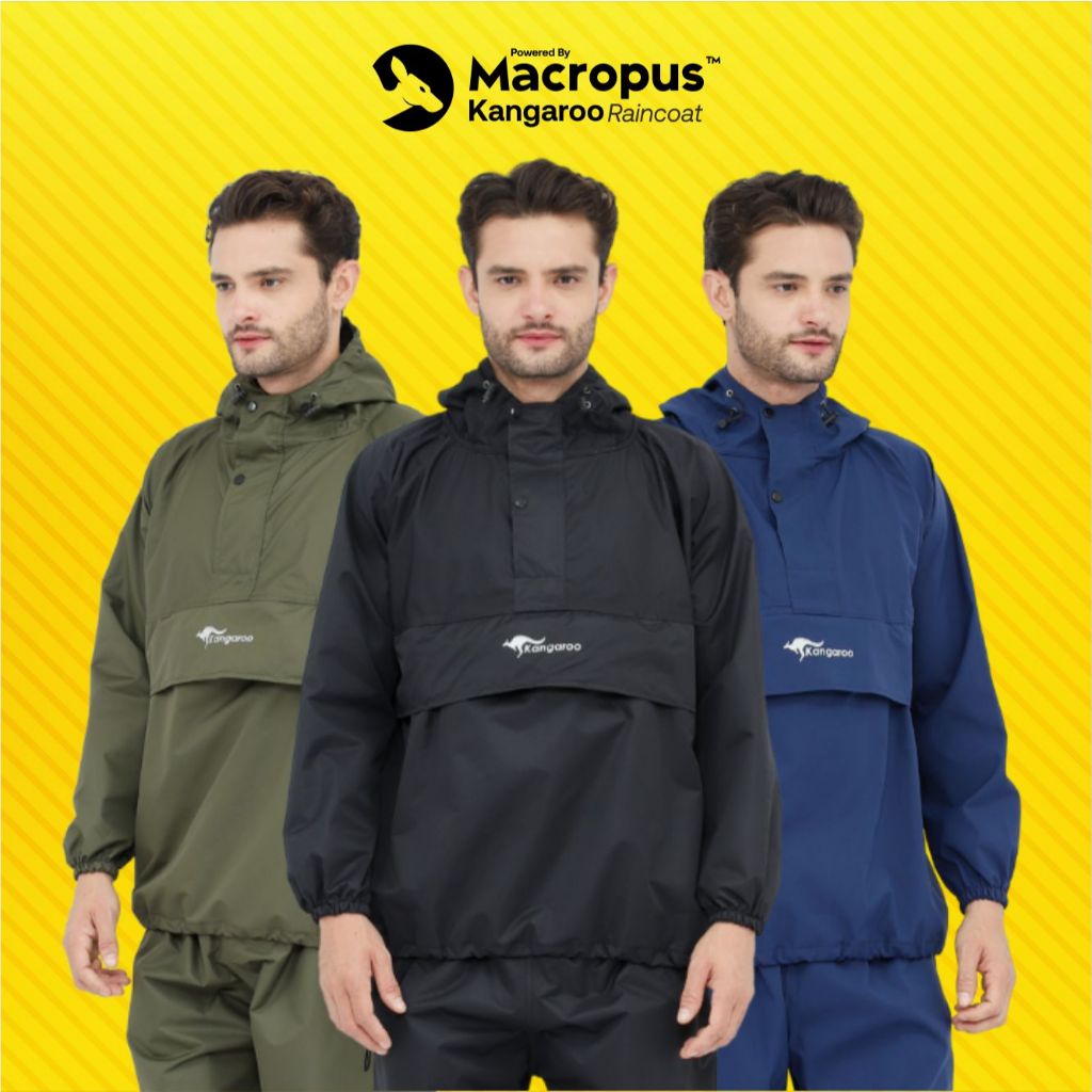 KANGAROO RAINCOAT Macropus Anti Tembus Jas Hujan Tebal Saku Kangguru Pria Wanita Dewasa Anti Air Bahan Taslan Import Original