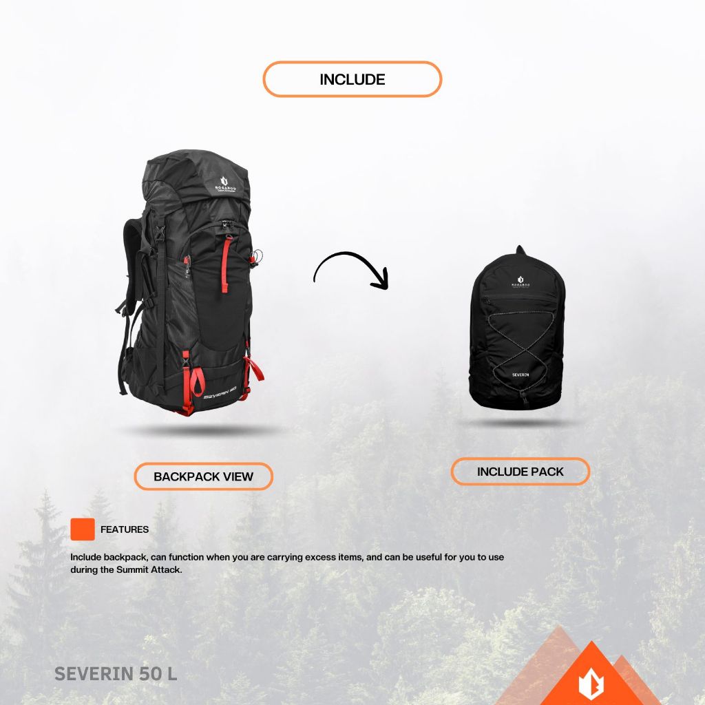 BOGABOO SEVERIN 50 Liter + TAS Daypack 15 L - Tas Gunung carrier Ultralight 50 L - Tas Ransel Camping - Tas Pendaki Gu