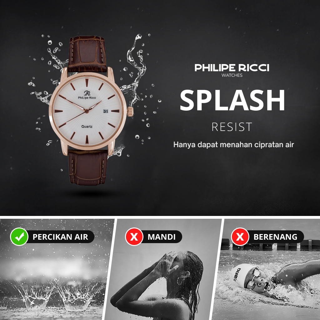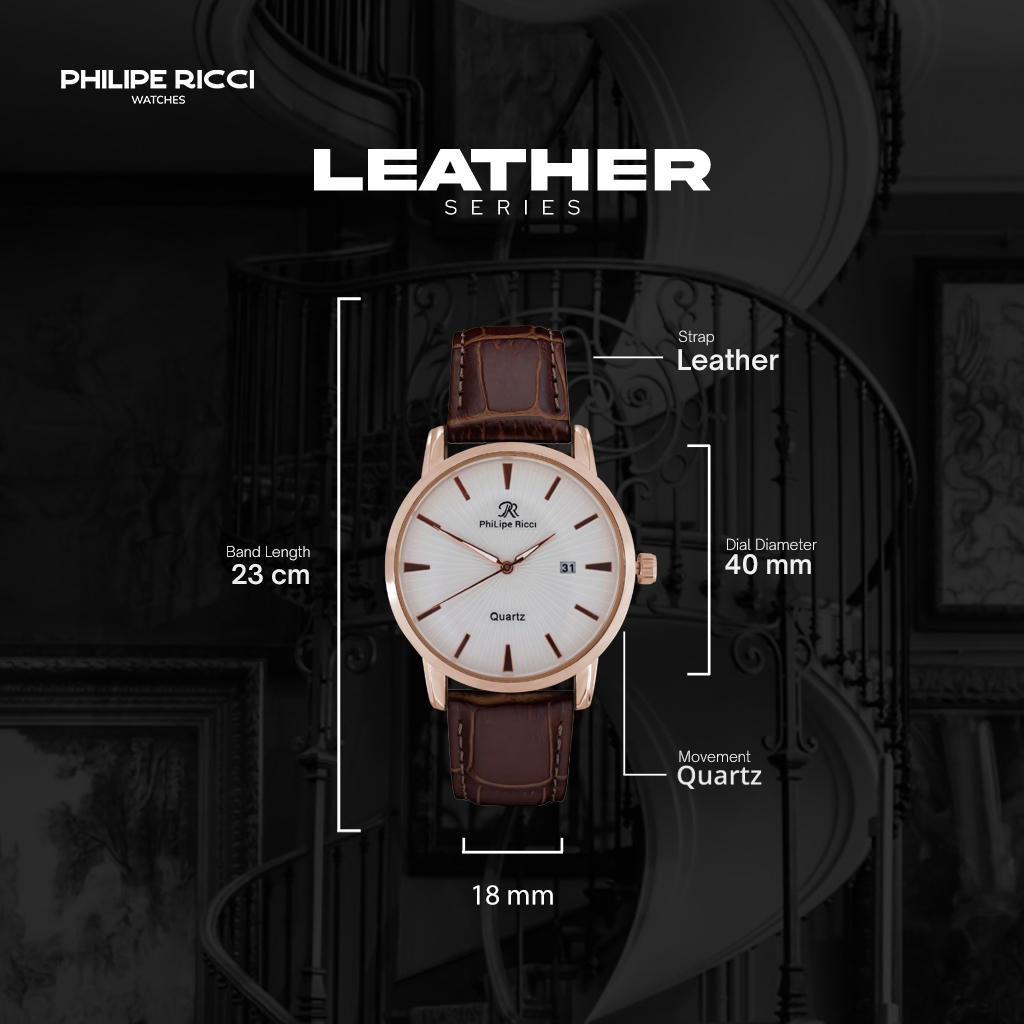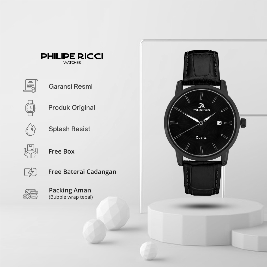 PhiLipe Ricci Jam Tangan Pria Kulit Analog Quartz Strap Leather Dial Bulat Besar Model Terbaru 4237 Man Watches Splash Resist Free Box Dan Baterai