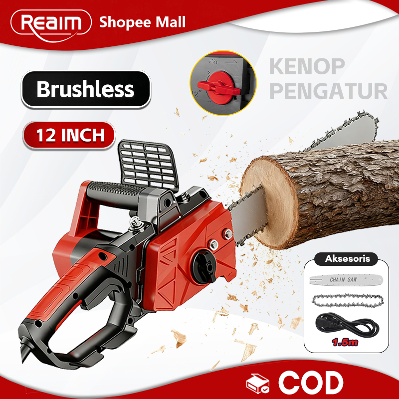 Reaim 12 Inch Cordless Gergaji Pemotong Kayu Gergaji Cordless Gergaji Listrik Alat Pemangkasan Portable Genggam Lithium