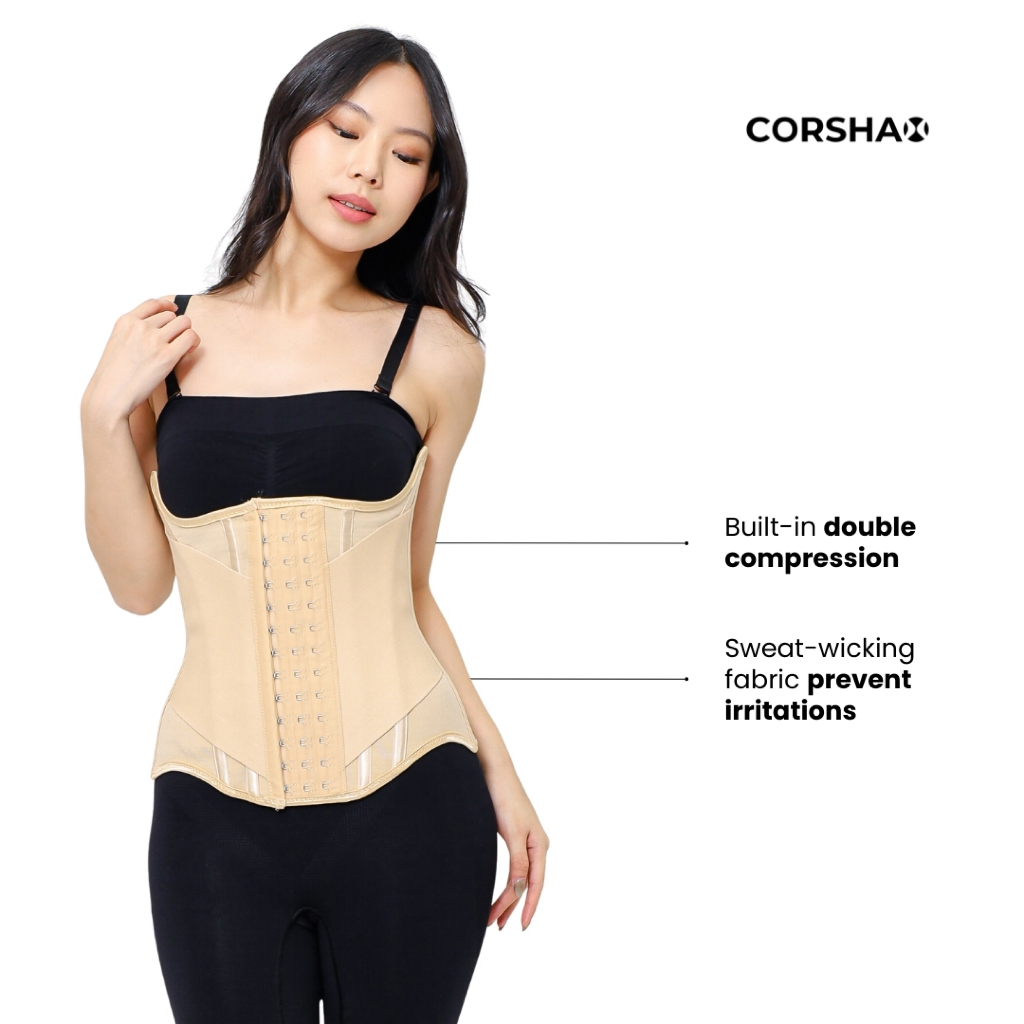 CORSHAX Duosmooth Built-In Double Compression Waist Trainer Korset Hourglass Long Torso Bahan Breathable