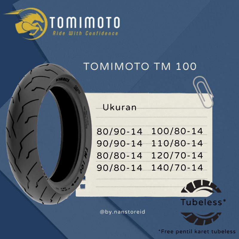 TOMIMOTO TM-100 BAN TUBELESS UKURAN 8090-14, 9090-14, 8080-14, 9080-14, 10080-14, 11080-14, 12070-14 & 14070-14
