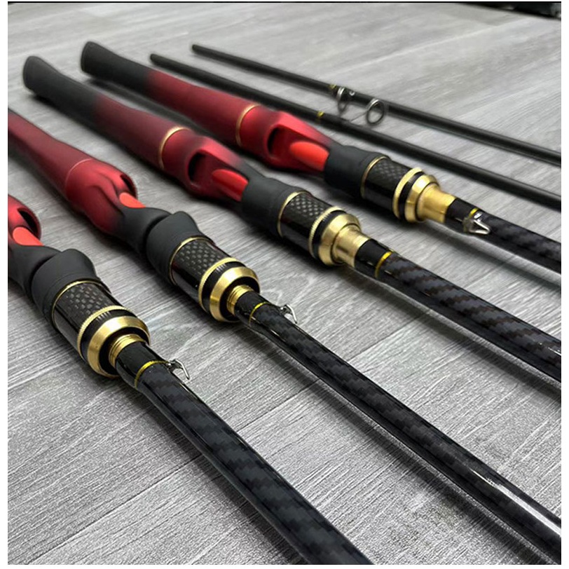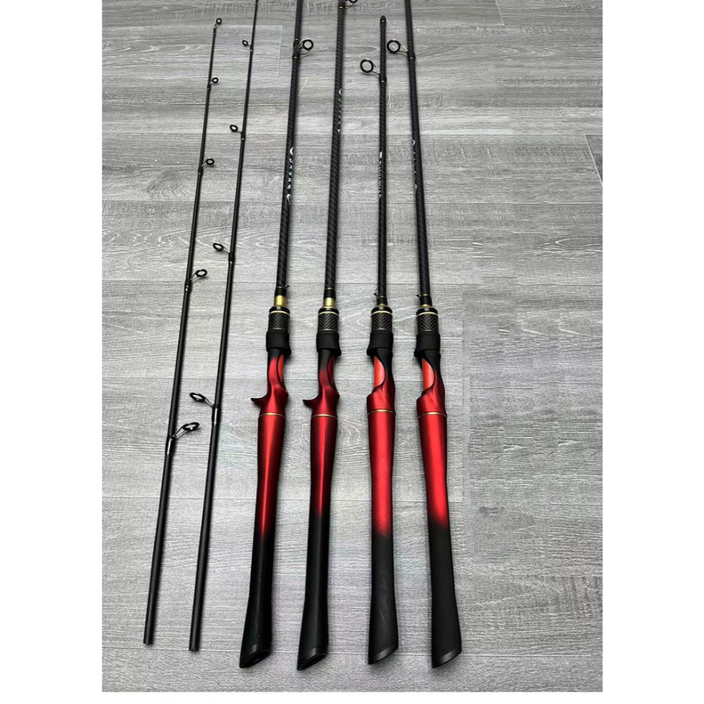 Joran Pancing 1.65M2.1M Carbon Joran Baitcasting Portabel Joran Spinning Joran Pancing Putar Umpan Karbon M Power Joran Pancing merah