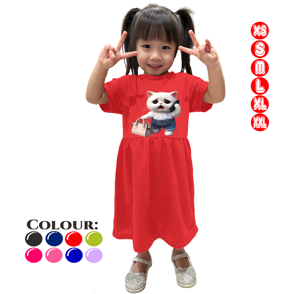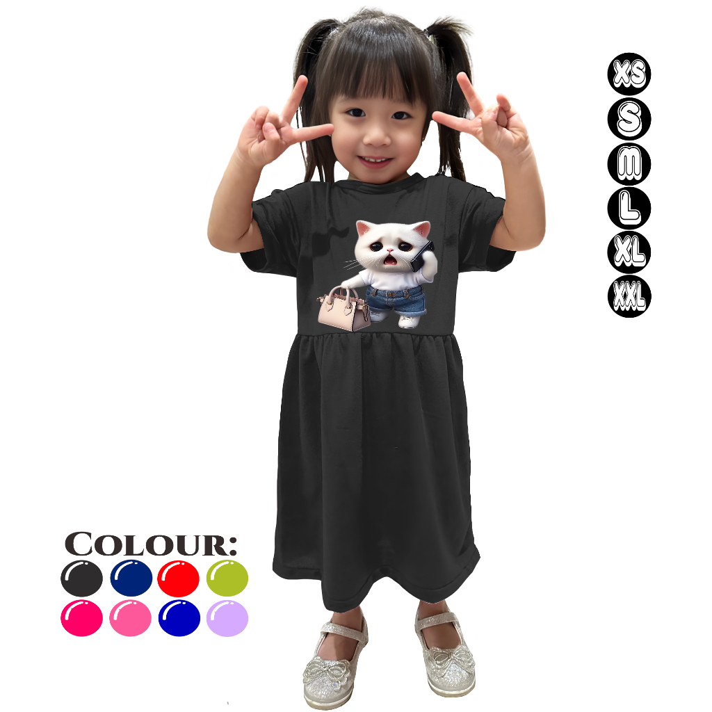Atasan Dress SHOCK CAT Anak Perempuan 3-15 Tahun Baju Lengan Pendek Terbaru Bahan Adem dan Murah