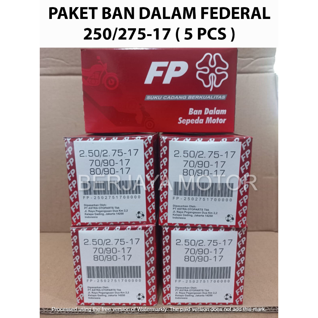 PAKET ISI 5 PCS BAN DALAM FEDERAL 250275-17 UNTUK MOTOR BEBEK 5 PCS