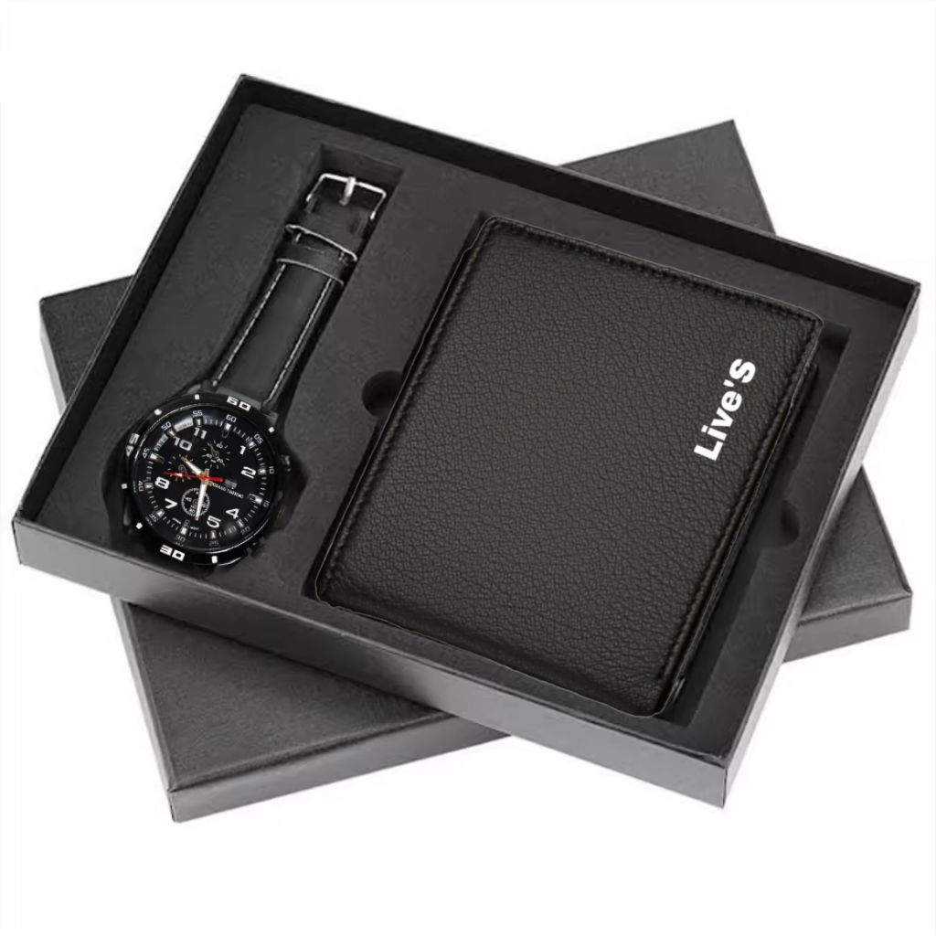 PAKET 2IN1 DOMPET LIPAT LVS PRIA SET DOMPET DAN JAM TANGAN