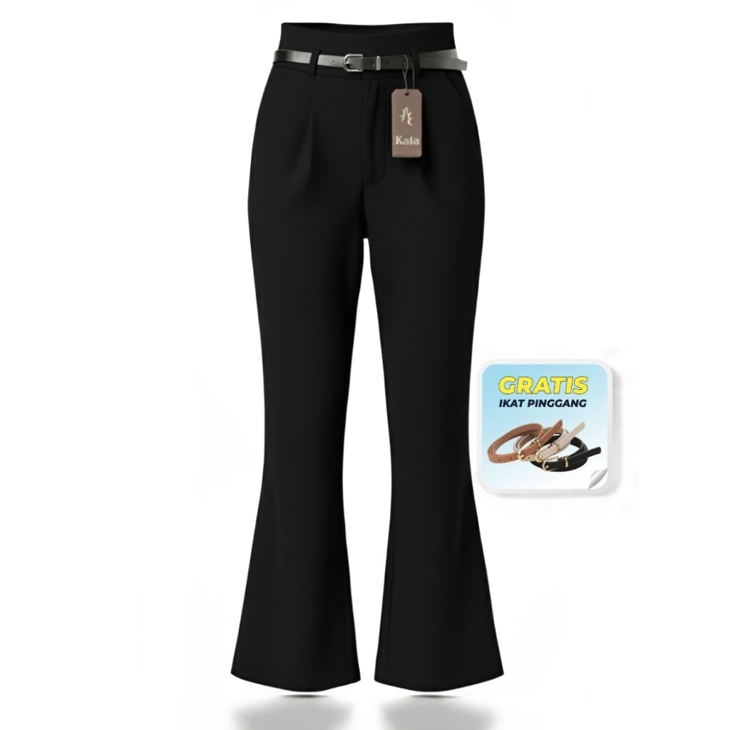 [ Kaia ] Velora Celana Kerja Wanita Highwaist - Celana Cutbray Semiwoll Premium Black