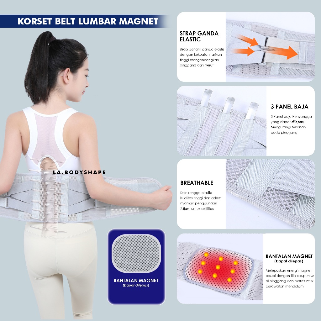 Korset belt lumbar magnet kesehatan tulang belakang nyeri pinggang sabuk dukungan tulang dan perut