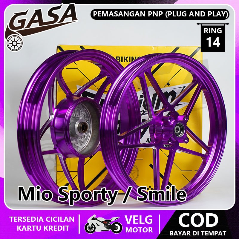 VELG BIKINGBOY Bintang Lima RING 14 untuk Mio Lama Mio Sporty / Smile / Soul Karbu VELG RACING CNC ALLOY RINGAN Ukuran 16014 18514 PNP TANPA MODIF Warna Ungu