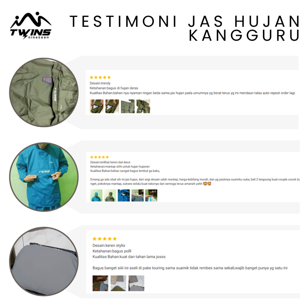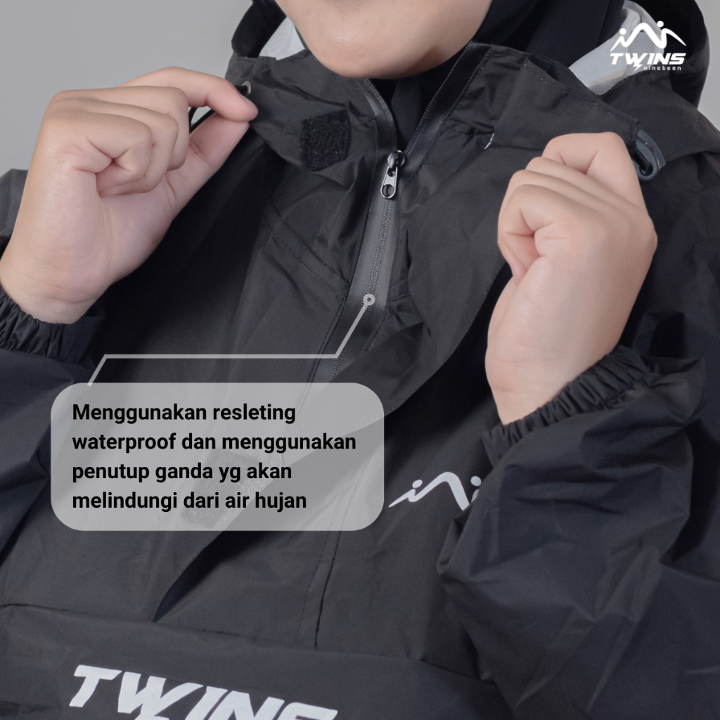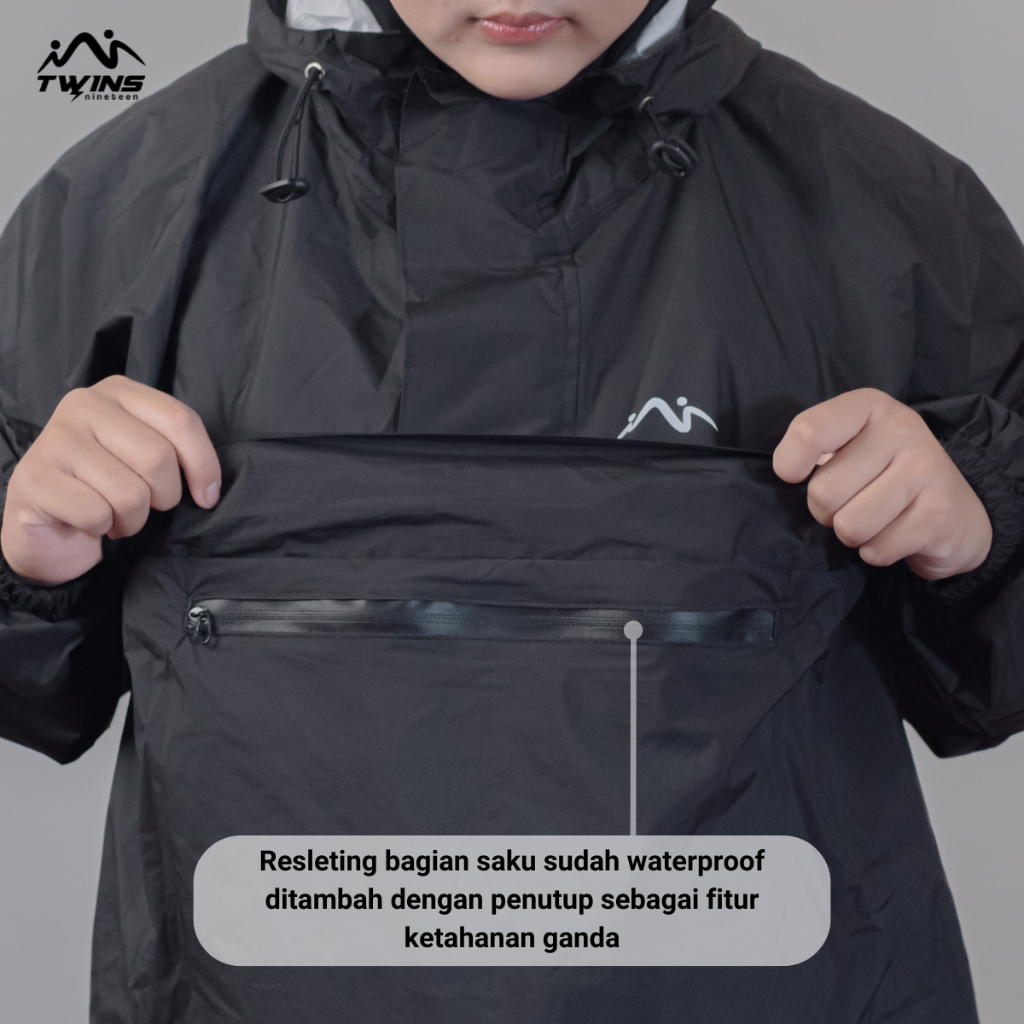 Jas Hujan TWINS19 Jas Hujan Saku Kangguru Pria Wanita Dewasa Anti Air Bahan Taslan Import Raincoat