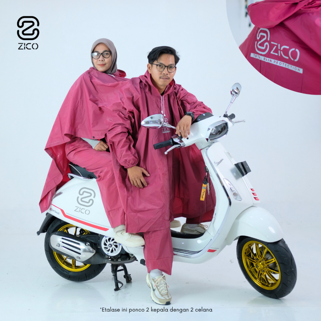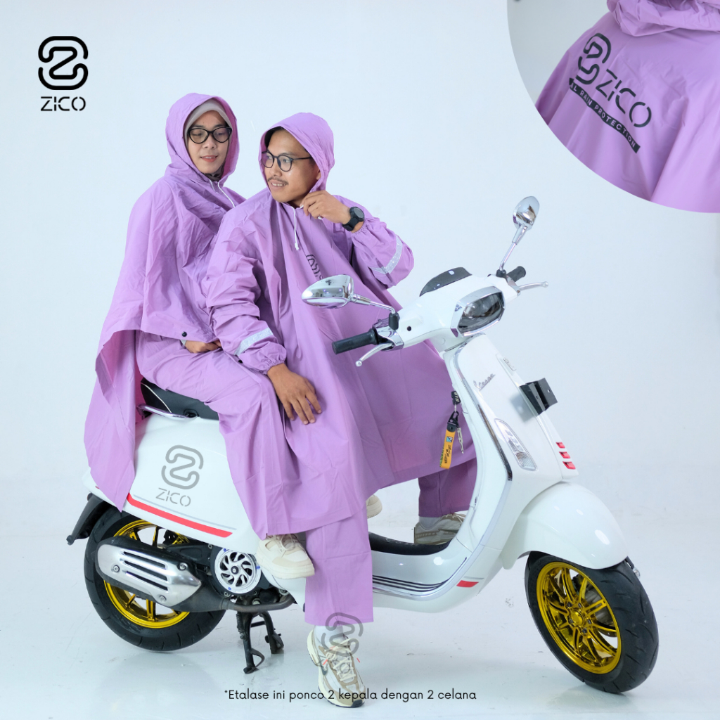 Jas Hujan Ponco Dua Kepala 2 Celana Jumbo Pria Wanita Dewasa Full Hot Press Tanpa Jahitan PVC ZICO