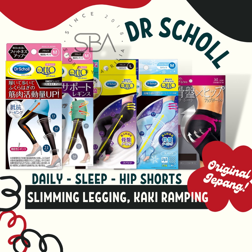 Dr. Scholl Medi Qtto (Sleep Legging, Daily legging, HIP Short) Original Jepang, Merampingkan Kaki, Melangsingkan, Detoksifikasi, Korset Pakaian Olahraga, Fitness, Yoga