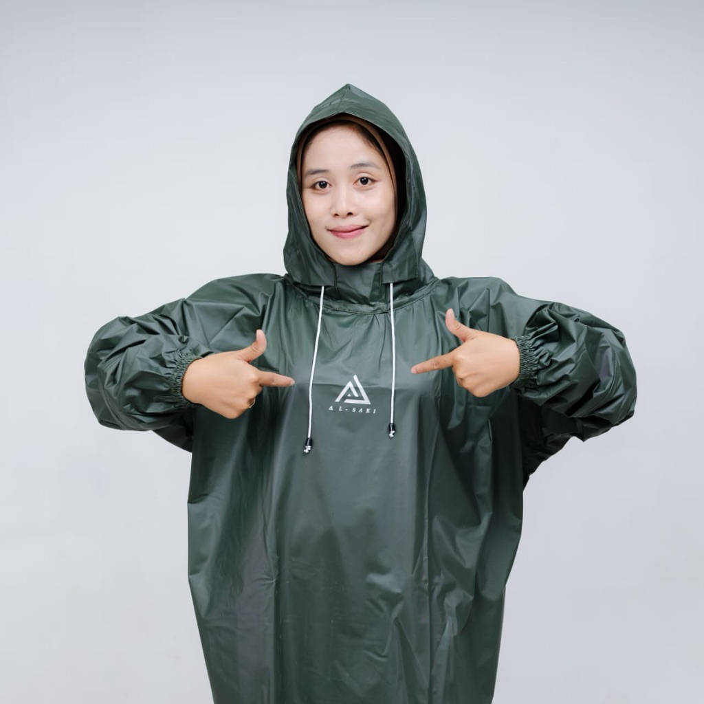 JAS HUJAN SETELAN HOODIE AL SAKI PRIA WANITA DEWASA BAHAN TEBAL PVC 0,25