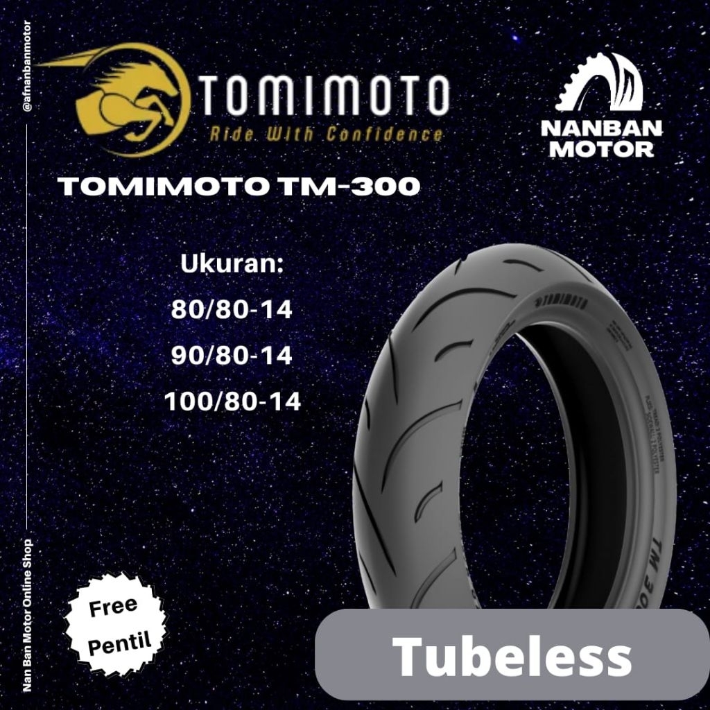 BAN MOTOR TOMIMOTO TM 300 BAN TUBELESS UKURAN 8080-14, 8090-14, 9080-14, 9090-14,100