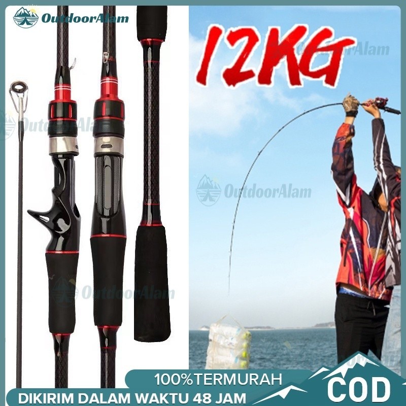 Joran pancing casting&spining Max Drag 12kg Spinning Fishing Rod Baitcasting Fishing Pole 2 Bagian 1.8M2.1m2.4m