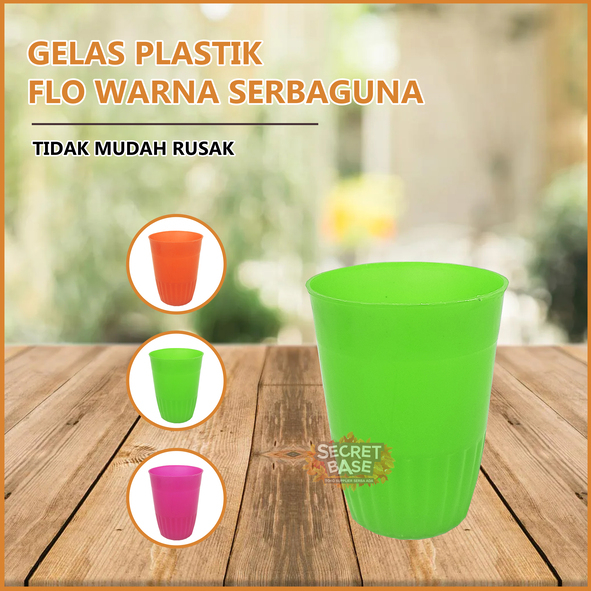 (ISI 12pcs) GELAS FLO - Gelas Plastik Plastik Lusinan / Mug Cangkir Aesthetic Murah Gratis Ongkir Garansi Pengiriman