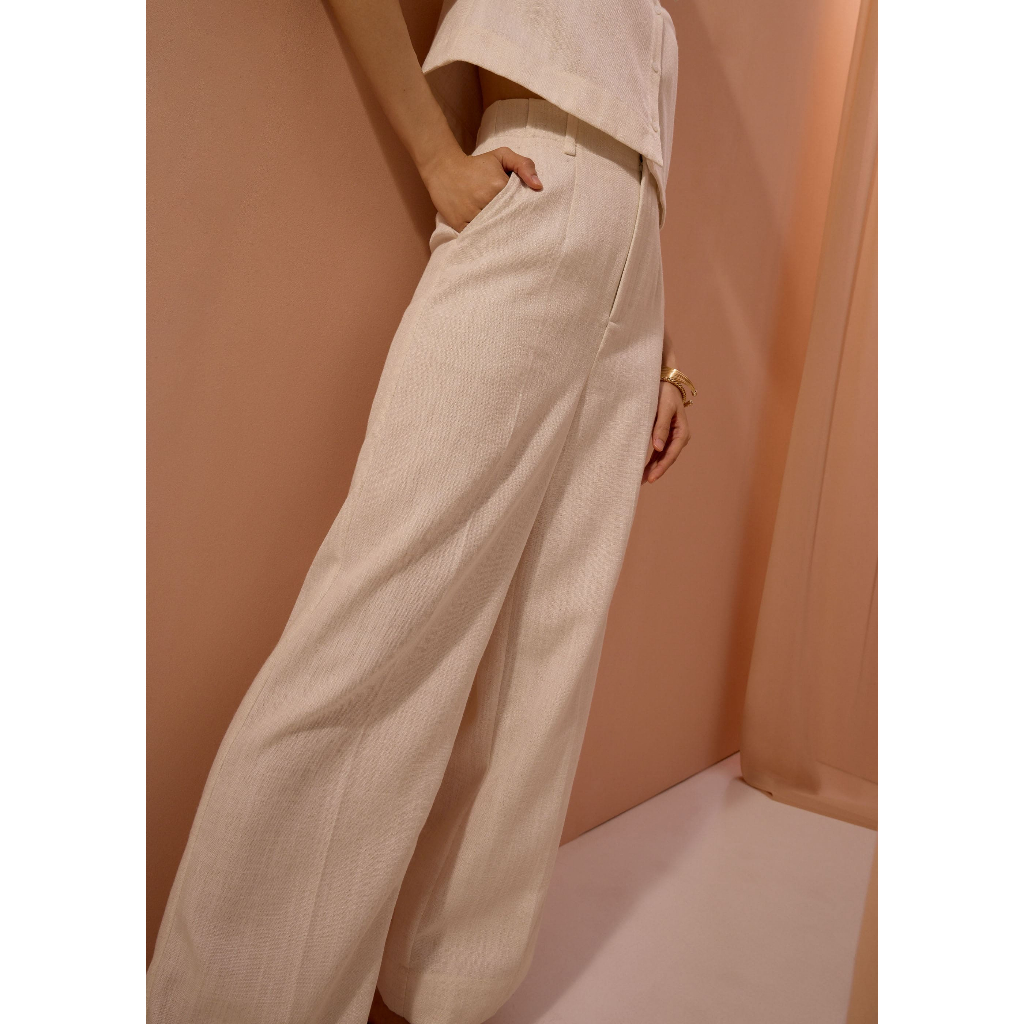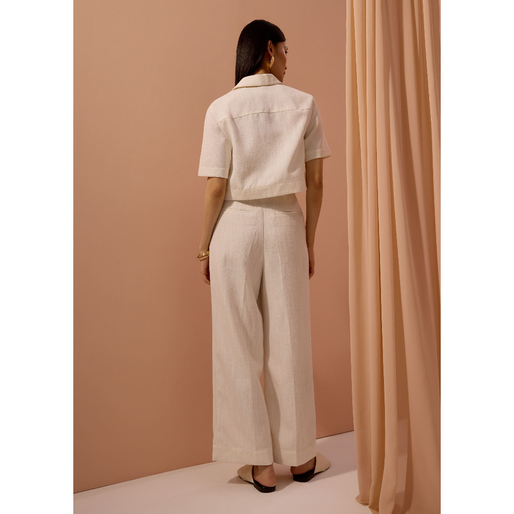 Love Bonito - Celana Panjang Wanita - Leggy™ Seva Textured Super High Waisted Straight Leg Pants - Ivory