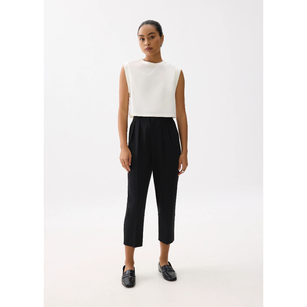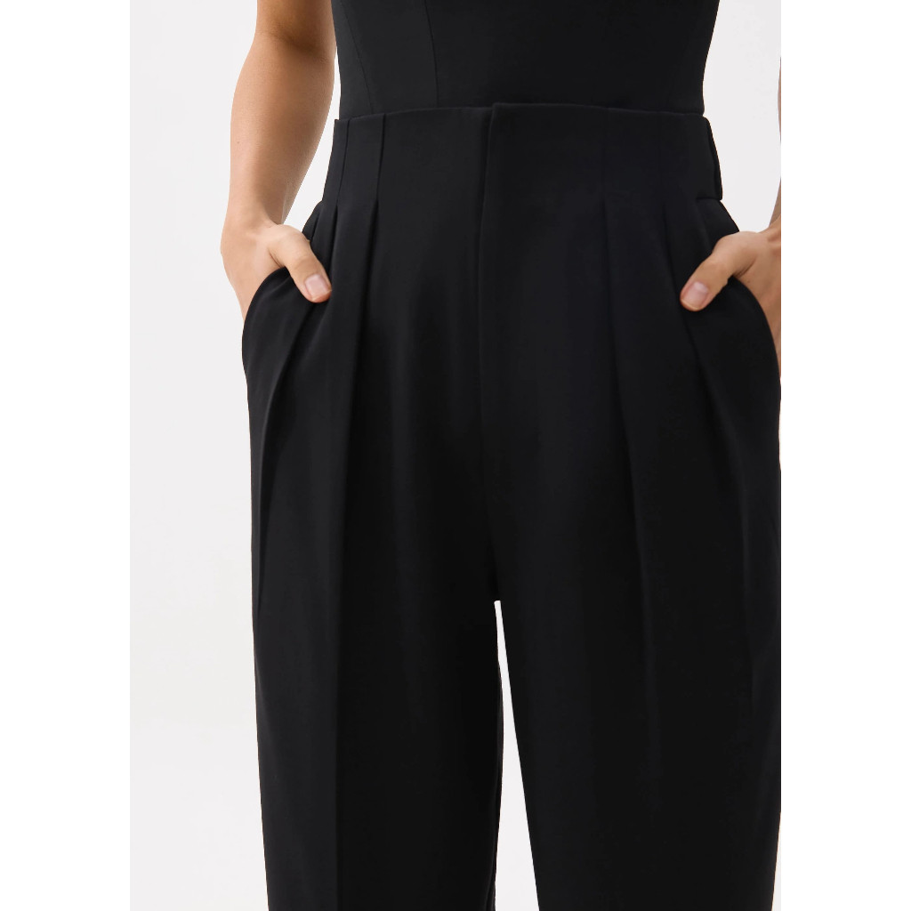 Love Bonito - Celana Panjang Wanita - Mika Elastic Pleated Peg Leg Pants - Black