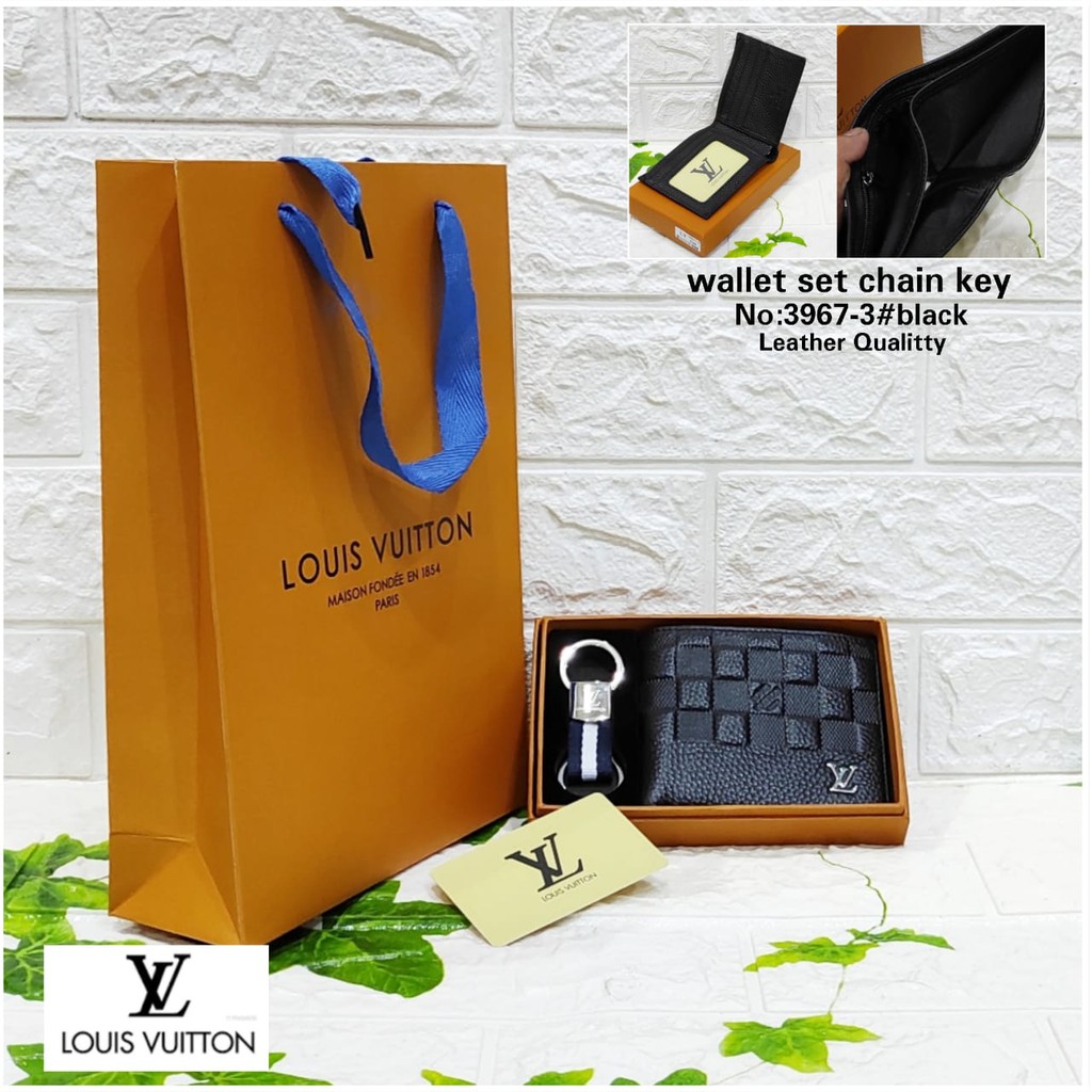 Dompet Lipat Pria Kulit Sintetis Set Chain Key
