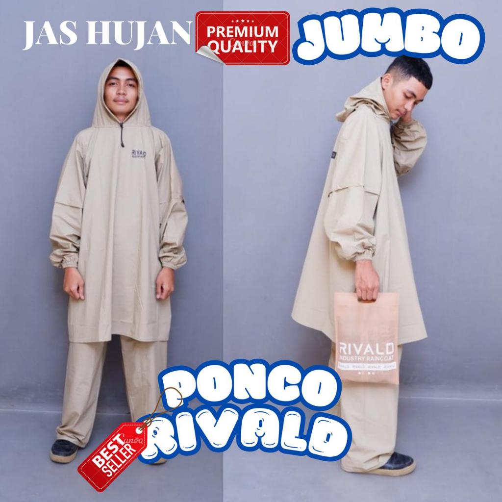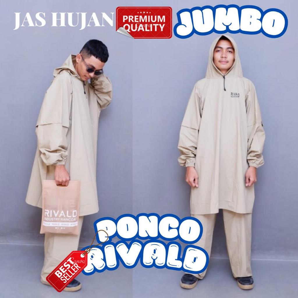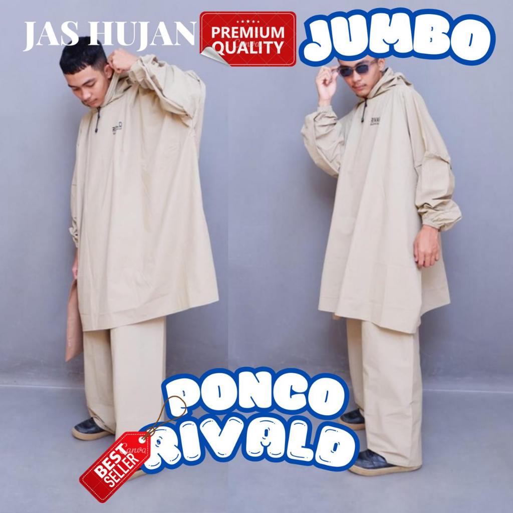 JAS HUJAN SETELAN PONCO + CELANA JUMBO PRIA WANITA PVC 0,25 CREAM TERBAIK BY RIVALD