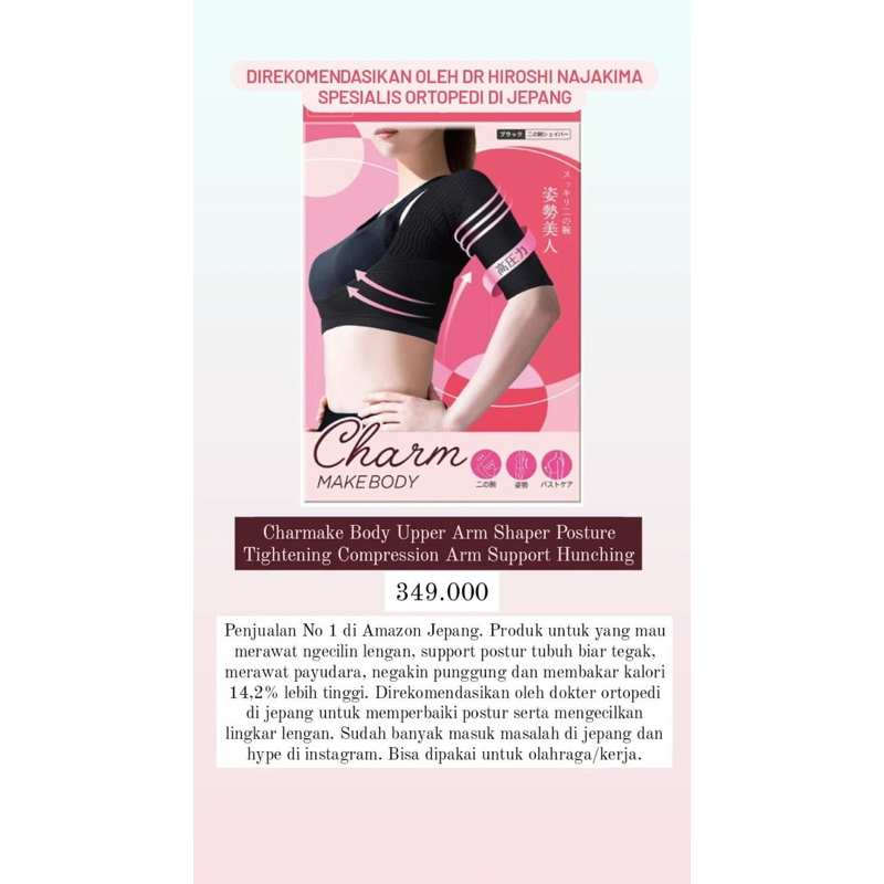 Charm Make Body Shaper Original Jepang, Pakaian Dalam Wanita, Mengecilkan Lengan, Merampingkan, Menekan Lemak, Detoksifikasi