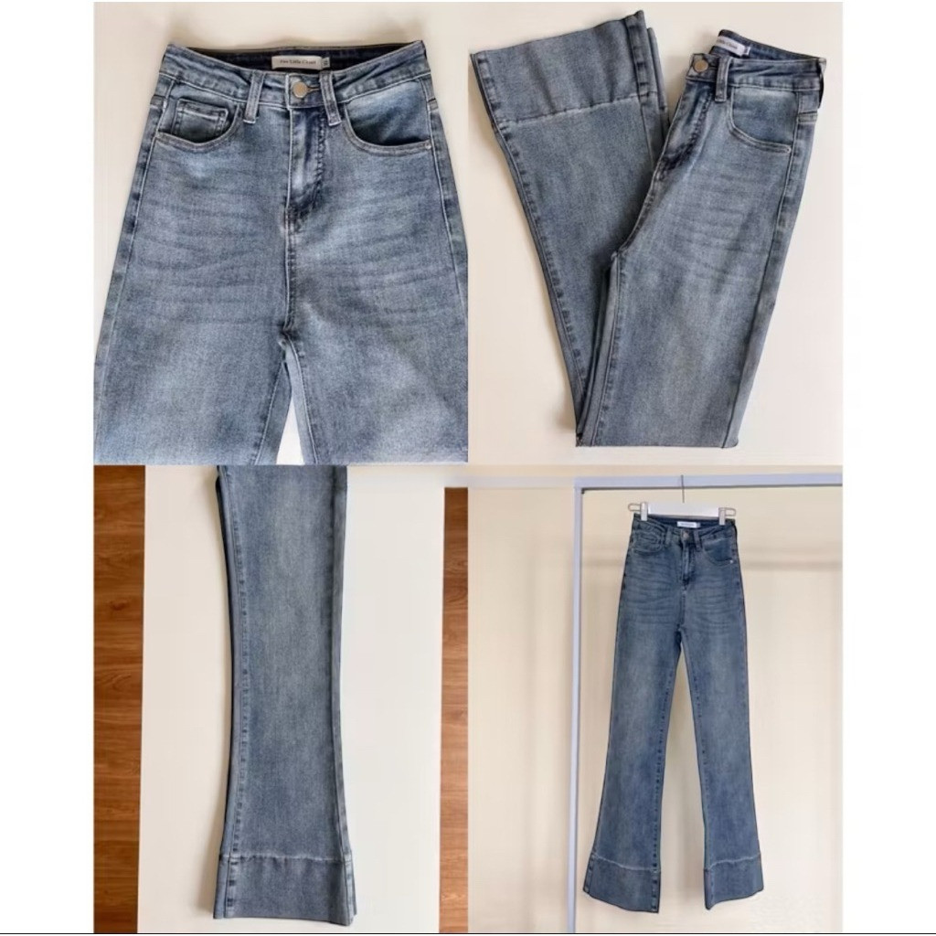 Jennie-HighWaist Cutbray Jeans Celana Flare Panjang Stretch Wanita Retro Vintage Lipat Bawah