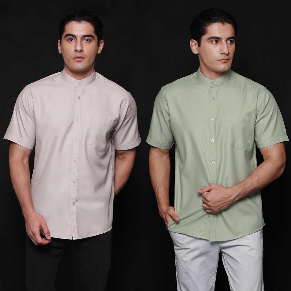 Simple Perfect Kemeja Pria Lengan Pendek Kerah Shanghai Polos | Kemeja Koko Solid Basic