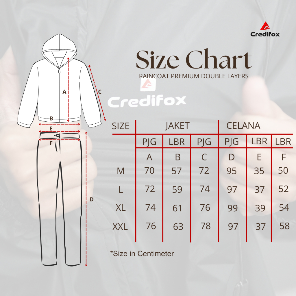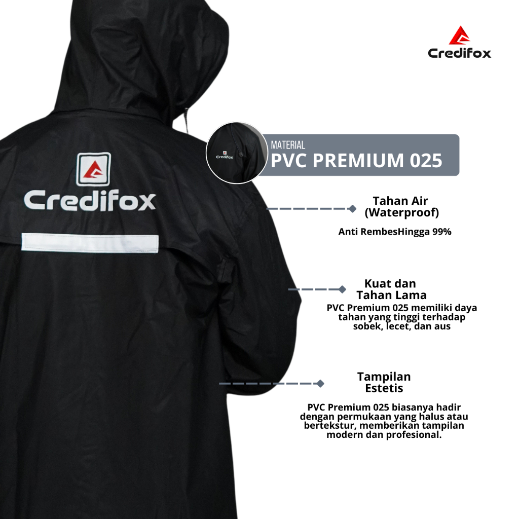 CREDIFOX Jas Hujan Pria dan Wanita Setelan - Bahan PVC Premium 025 Waterproof - Mantel Hujan - Raincoat Premium