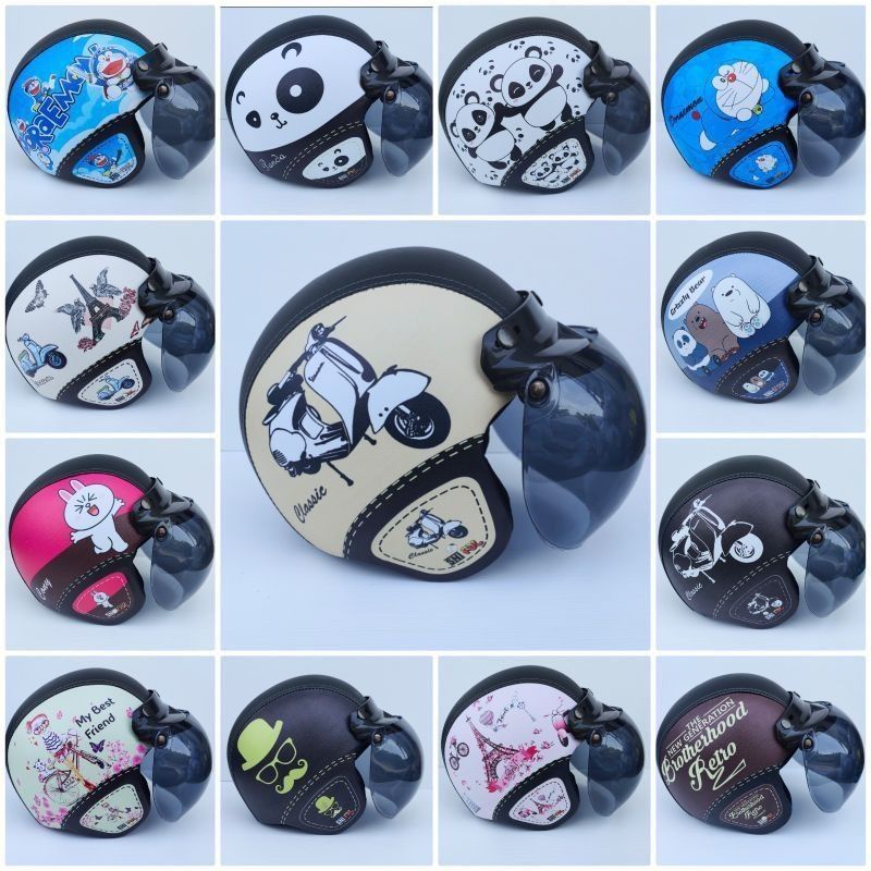 HELM BOGO DEWASA RETRO KULIT SNI DEWASA FULL MOTIF MURAH - FREE PACKING