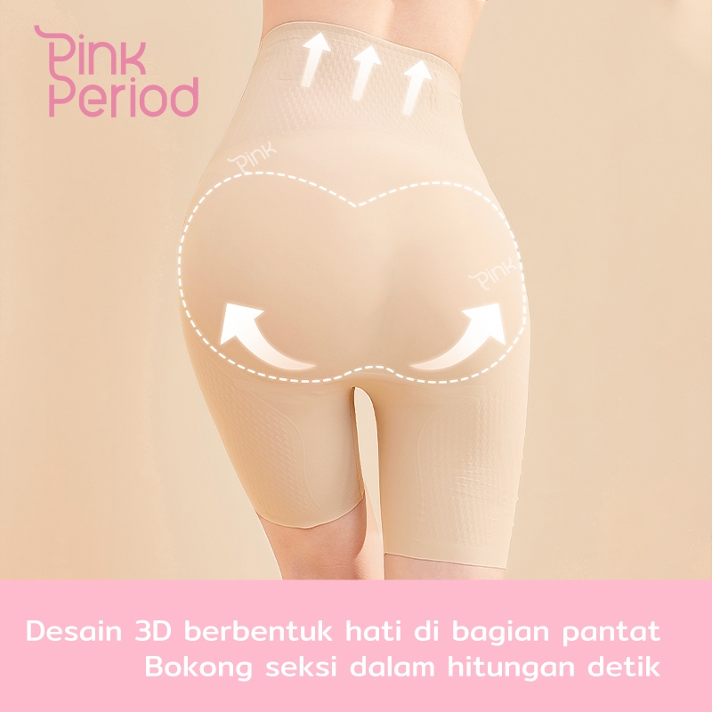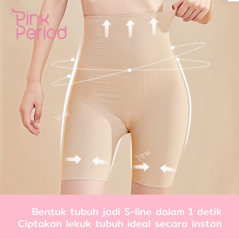 Pink Period Celana Korset Seamless Wanita 3in1 Bodyshaper Melangsingkan Perut Buncit Celana Dalam Shapewear Harian Tinggi Lembut