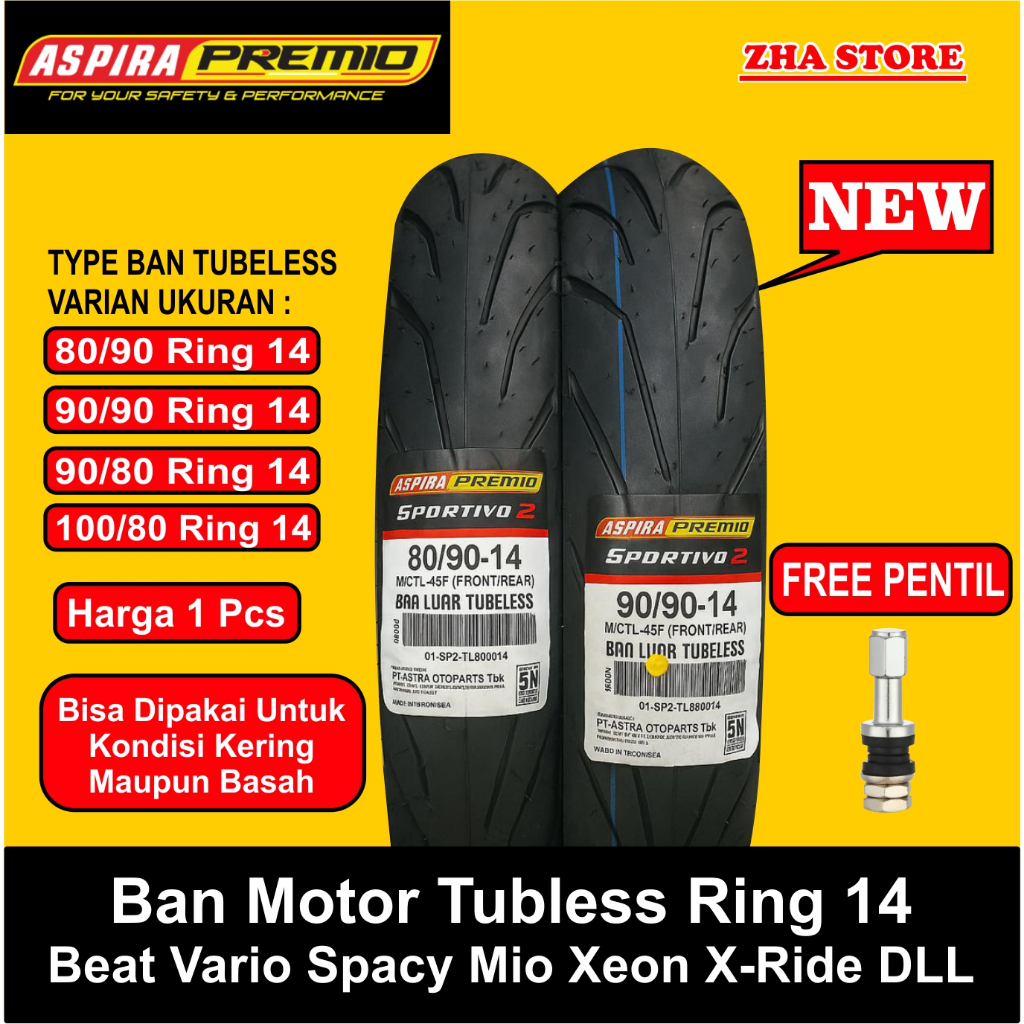 Promo Aspira Premio Sportivo 2 Ban Motor Ring 14 & 17 Baru dan Original Tubles