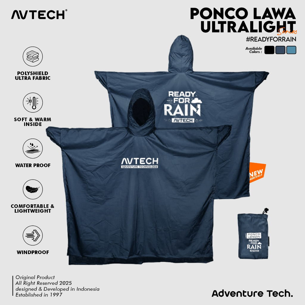 AVTECH - Jas Hujan Ponco Lengan Kelelawar Mantel Outdoor Gunung Waterproof Ultralight - LAWA