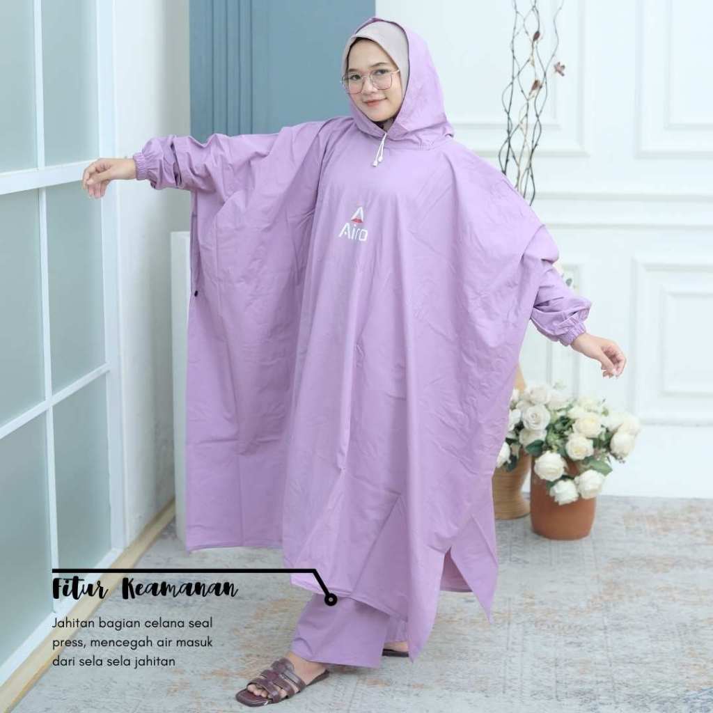 AIRO - Jas Hujan Ponco Celana Dewasa Pria Wanita Mantel Jumbo Pvc Karet Tebal 0,25