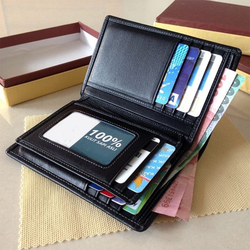 Dompet Kulit Pria Asli Original 3/4 Panjang Banyak Slot Kartunya Bergaransi Dompet Kulit Custom Nama Logo Foto